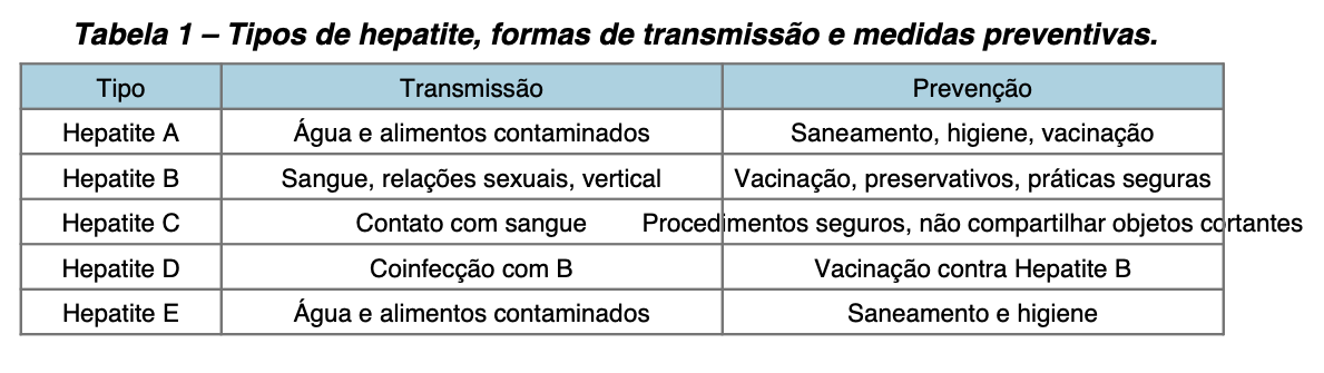 Entre os cinco tipos principais — A, B, C, D e E —, destacam-se A e E. Elas se transmitem pela via fecal-oral, através de água ou alimentos contaminados.