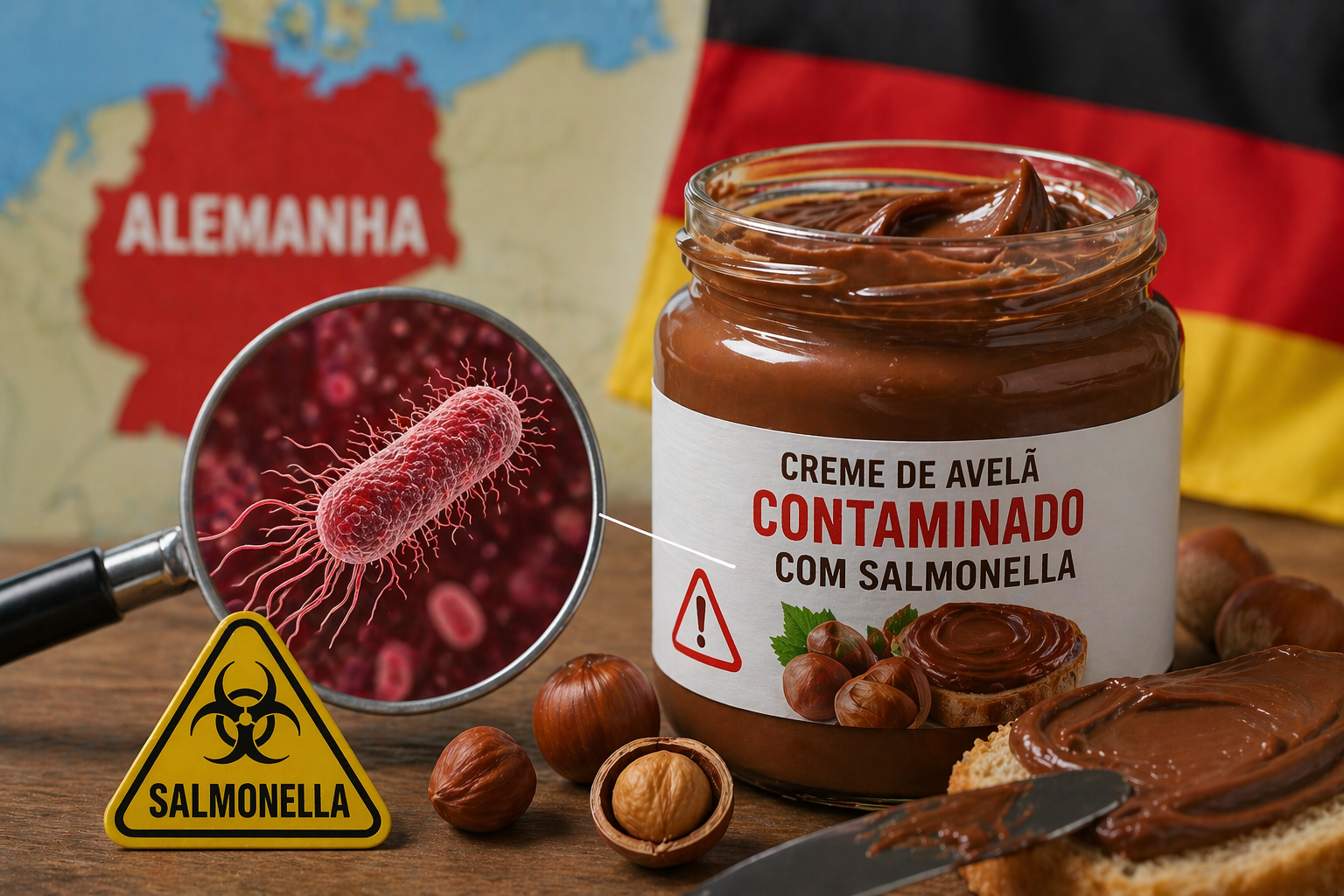 O caso não ficou restrito a uma suspeita vaga. A investigação epidemiológica apontou o produto como veículo provável da infecção, e a detecção de Salmonella em determinados lotes durante controles internos do próprio fabricante levou ao recall público em 9 de abril de 2026. O Food Safety News informou ainda que o produto envolvido foi a Nudossi Haselnuss-Nougat-Crème 300g, com datas de validade entre 1º de agosto e 30 de setembro de 2026, distribuída em grandes redes varejistas alemãs.